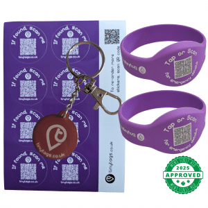 Family Pack – 2x wristbands, 1x tinytag and 1x pack of QR coded stickers